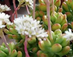 青星美人是景天科厚叶草属的多肉植物。开花时抽生出长长的花梗,簇状花序,红色花朵依次开放,呈倒钟形,…