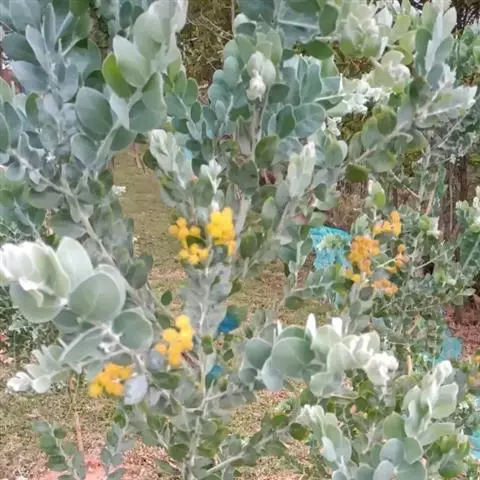 叶金合欢一种速生的小乔木,可长到6米高,树冠可伸展到3米宽,树型美观俊挺。冬季和早春盛开朵朵芬芳的金黄毛球状花。有趣的是她幼年的叶片和成熟后的叶片形态截然不同,前者似轻柔白羽毛,后者却呈椭圆形,为迷人的银绿色。无论植于山坡或是水边,其优雅自树姿都是一道亮丽的景观。 花语:稍纵即逝的快乐。