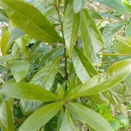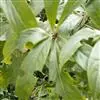 大乔木,高达15-20米,树干通直,分枝少;老的树皮灰白色,新的树皮带黄褐色。小枝有毛或近无毛。叶革质或厚革质,披针形或倒披针形,长7-13(15)厘米,宽2-3(4)厘米,先端渐尖或长渐尖,基部渐狭或楔形,上面发亮,下面有短柔毛,脉上被伸展长柔毛,有时具缘毛,中脉上面下陷,侧脉每边10-14条,上面平坦或下陷,下面突起,横脉及小脉多而密,在下面结成十分明显的网格状;叶柄长5-11(20)毫米。