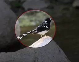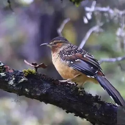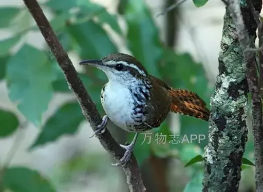 斑胸短翅莺:小型鸟类,体长11-13厘米。上体暗赭褐色,眉纹灰白;下体白色,下喉至上胸具灰褐点斑,…