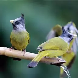 凤头雀嘴鹎:属小型鸟类,体长18-22厘米。嘴粗短、呈象牙色或乳黄色,前额和脸灰色,头顶黑色,…