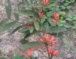 胡颓子 常绿直立灌木,高3-4米,具刺,刺顶生或腋生,长20-40毫米,有时较短,深褐色;幼枝微扁棱形,密被锈色鳞片,老枝鳞片脱落,黑色,具光泽。