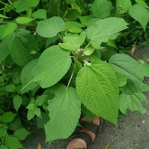 单毛刺蒴麻,一年生草本或半灌木,叶纸质,卵形或卵状披针形,先端尾状渐尖,基部圆形或微心形,两面有稀…
