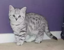 美国短毛猫(American Shorthair)是原产美国的一种猫,其祖先为欧洲早期移民带到北美的猫种,与英国短毛猫和欧洲短毛猫同类。据记载,五月花号上携带了数只猫以帮助除鼠。该品种的猫是在街头巷尾收集来的猫当中选种、并和进口品种如英国短毛猫、缅甸猫和波斯猫杂交培育而成。美国短毛猫素以体格魁伟,骨胳粗壮,肌肉发达,生性聪明,性格温顺而著称,是短毛猫类中大型品种。被毛厚密,毛色多达30余种,其中银色条纹品种尤为名贵。