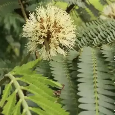 光荚含羞草 Kuntze)是豆科,含羞草属落叶灌木,高可达6米;小枝无刺,二回羽状复叶,叶轴无刺,…