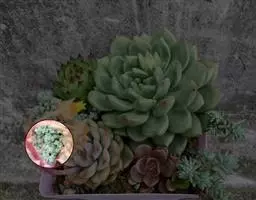 紫珍珠是景天科石莲花属的多年生肉质草本植物。植株中小型;叶片肉质,匙形,呈莲座状紧密排列;叶片粉紫色,…