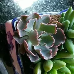 江户紫,景天科伽蓝菜属草本植物,是多年生草本花卉。花白色,但栽培中很少能见到花,常作观叶植物栽培。…