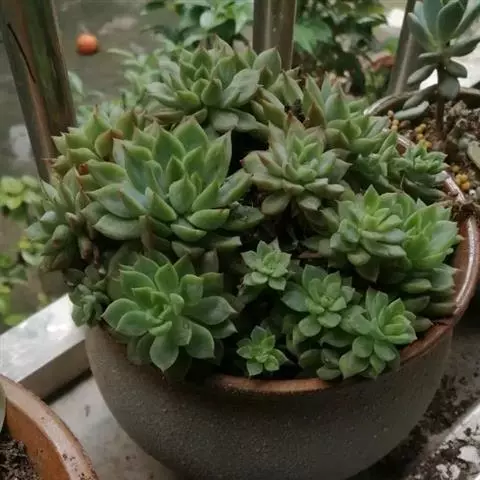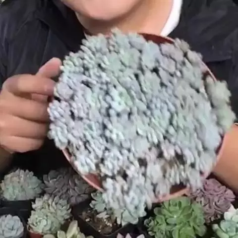 白霜,景天科景天属小型多肉植物,叶子绿色肉质会有白霜覆在表面。