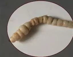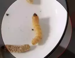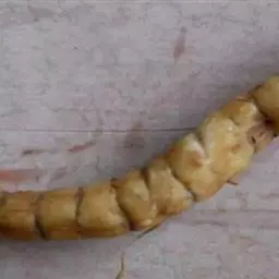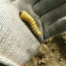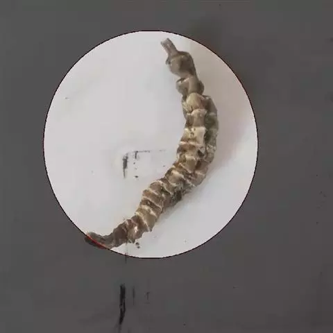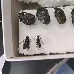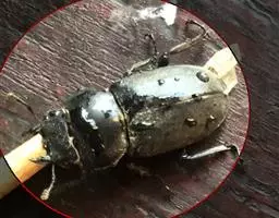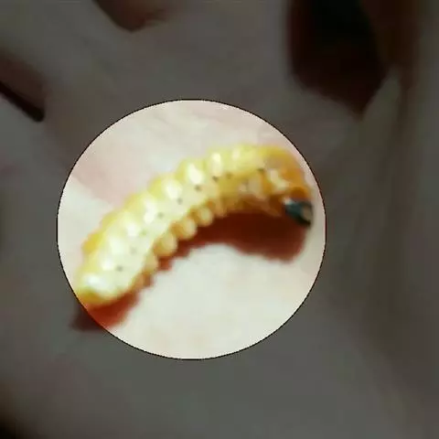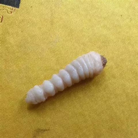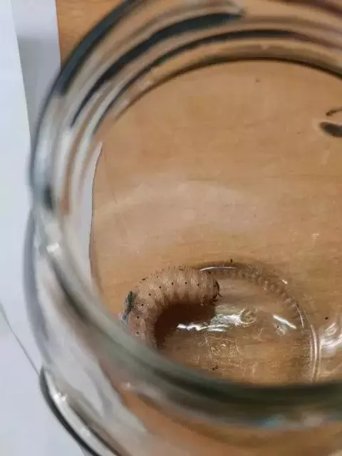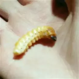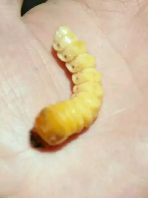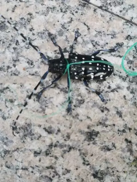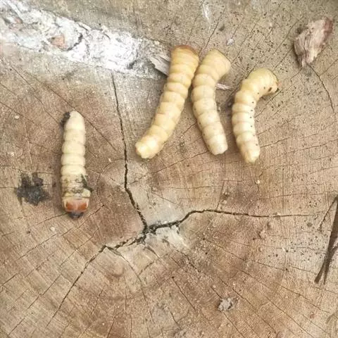 斗米虫为锈色粒肩天牛的幼虫,锈色粒肩天牛主要危害槐树Sophora japonica,…