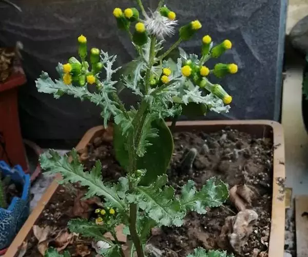 欧洲千里光(学名:Senecio vulgaris L. )是菊科,千里光属一年生草本植物。茎单生,直立,高可达45厘米,叶无柄,叶片全形倒披针状匙形或长圆形,羽状浅裂至深裂;侧生裂片长圆形或长圆状披针形,上部叶较小,线形,具齿。头状花序无舌状花,总苞钟状,具外层苞片;苞片线状钻形,尖,通常具黑色长尖头;总苞片线形,舌状花缺如,管状花多数;花冠黄色,檐部漏斗状,裂片卵形,附片卵形;花药颈部细,瘦果圆柱形,冠毛白色,4-10月开花。
