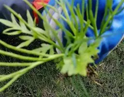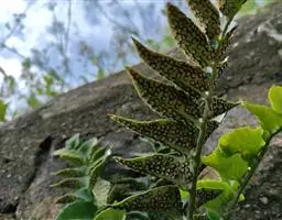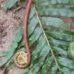 在它的叶片背面有许多孢子囊群,看起来像一个个黄色小点,里面长着许多孢子,它们就是靠这些孢子繁衍后代的。孢子成熟后随风飘散,落到土壤中,先萌发长成一个心脏形的绿色扁平的原叶体,能进行光合作用。腹面生有假根,能独立生活。