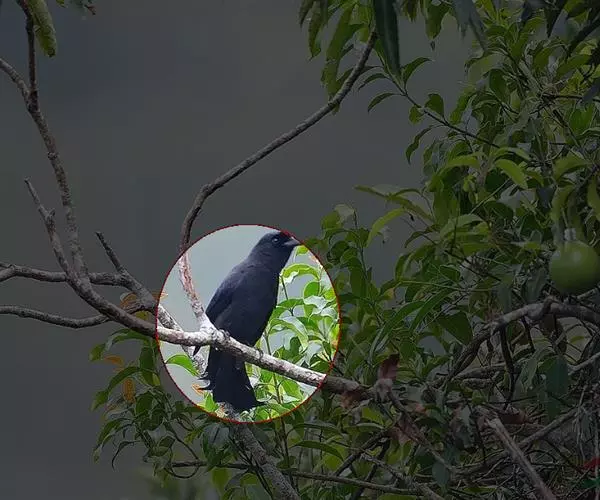 虹膜深红色,鸟喙白至土黄色或浅绿色,基部较灰暗。脚蓝灰。有点像乌鸦,又有点像斑鸠,比乌鸦和斑鸠都要大。