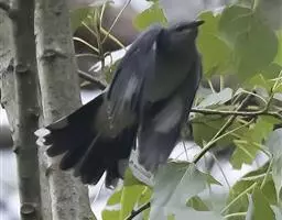 大杜鹃:是普通杜鹃的中国亚种。体长约320毫米,翅长约210毫米。雄鸟上体纯暗灰色;两翅暗褐,翅缘…