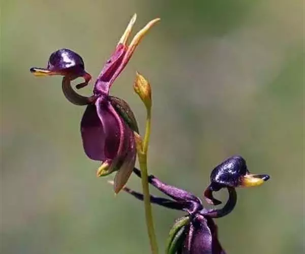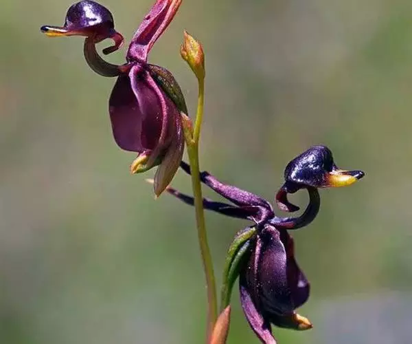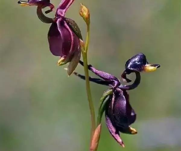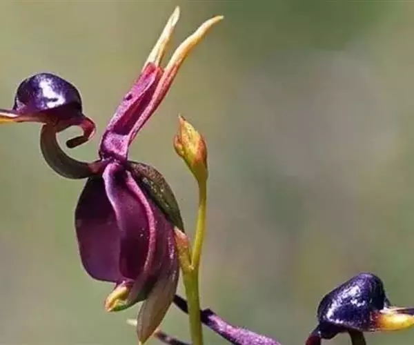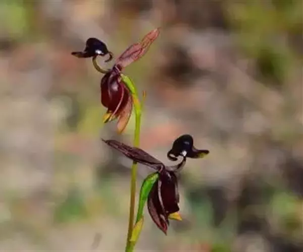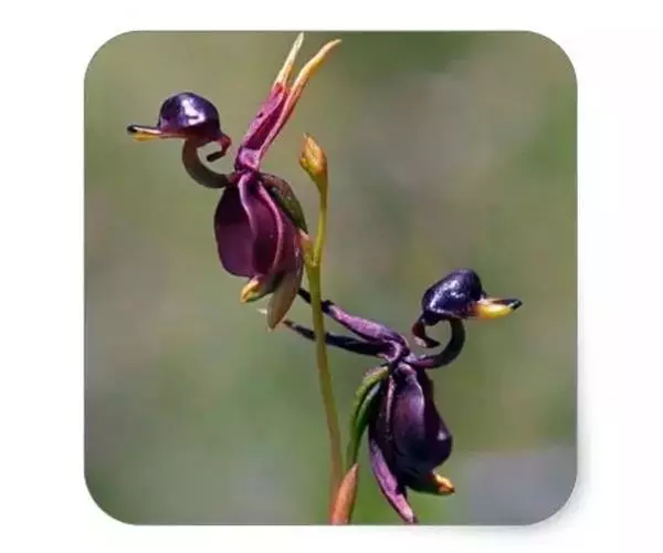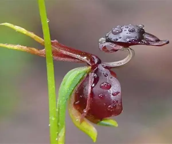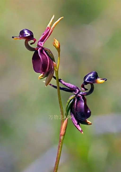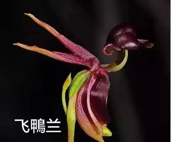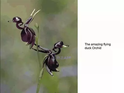 飞鸭兰(Flying Duck Orchid)其花朵侧面像极了一只只凌空飞起的小鸭子,非常生动。为兰科植物,一个花莛通常多朵花。