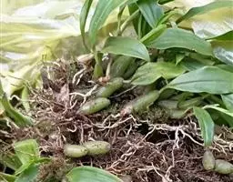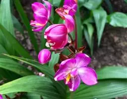 三棱虾脊兰:根状茎不明显。假鳞茎圆球状,粗约2厘米,具3枚鞘和3-4枚叶。假茎粗壮,鞘大型,先端钝,…