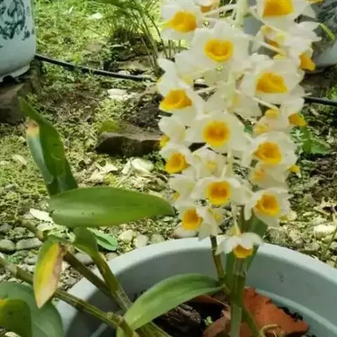 长距石斛是兰科石斛属附生草本植物。长距石斛茎直立,圆柱形;叶窄披针形,基部下延为抱茎鞘,…
