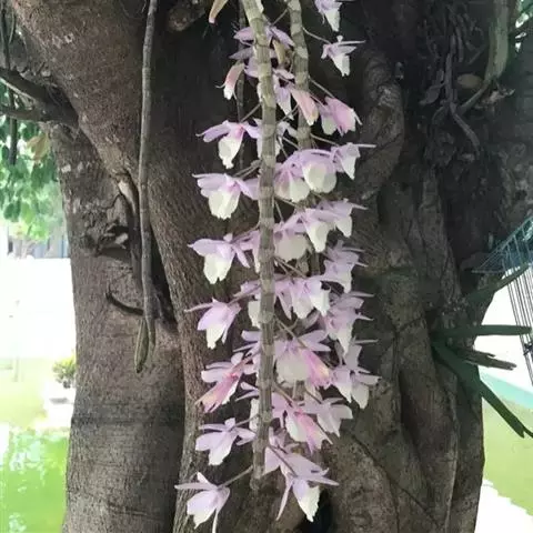 多花指甲兰是兰科、指甲兰属植物。茎粗壮,叶肉质。花序叶腋生,柄粗壮,轴较长,密生许多花;花苞片绿色,…