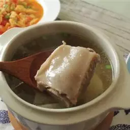 排骨汤,是用猪、牛、羊等动物剔肉后剩下的肋骨和脊椎骨制作的一道家常汤品。排骨除含蛋白、脂肪、维生素外,…