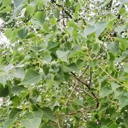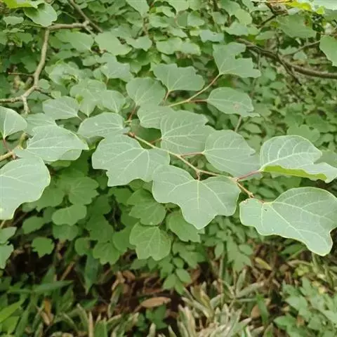 落叶灌木或小乔木;树皮棕褐色,有纵裂及斑点。幼枝条黄绿色,光滑、无皮孔,幼时有绢状柔毛,不久脱落。冬芽长角锥状,芽鳞红色。叶互生,通常卵形或倒卵状椭圆形,有时为狭倒卵形或狭椭圆形,长(5)9-12(16.5)厘米,宽(2.5)5.5-8(12.5)厘米,先端渐尖,基部圆或宽楔形,有时稍心形,纸质,上面绿色,幼时在中脉上被微柔毛,不久脱落,下面带绿苍白色,被白色柔毛,后渐脱落成几无毛,羽状脉,侧脉每边6-8(10)条;叶柄长6-17(30)毫米,幼时被柔毛,后脱落。