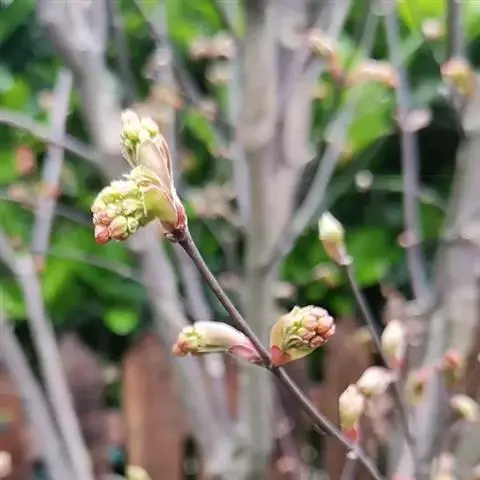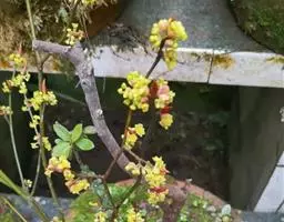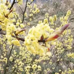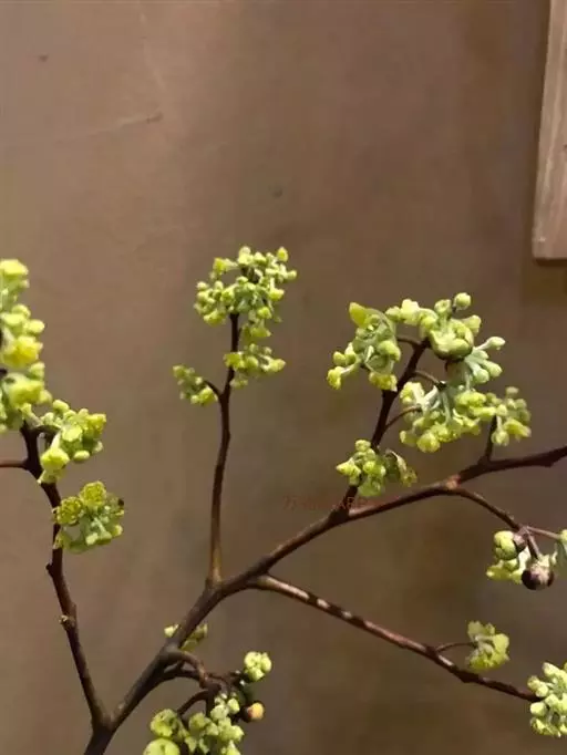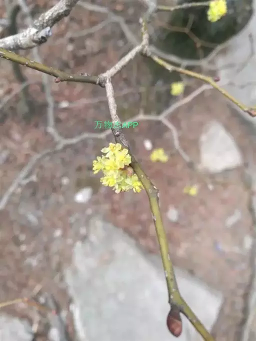 伞形花序着生于叶芽两侧各一,具总梗,长约3毫米,红色,密被红褐色微柔毛,果时脱落;总苞片4,内有花约5朵。雄花花梗长4-5毫米,密被白色柔毛;花被片6,黄色,椭圆形,近等长,长约2毫米,花丝无毛,第三轮的基部着生2个宽肾形具长柄腺体,柄基部与花丝合生;退化雌蕊细小,长约1.5毫米,狭角锥形。雌花花梗长4-5毫米,密被白柔毛;花被片黄色,宽矩圆形,长约2毫米,外轮略小,外面在背脊部被白柔毛,内面被稀疏柔毛;退化雄蕊条形,一、二轮长约1.2毫米,第三轮略短,基部着生2腺体,腺体几与退化雄蕊等大,下部分与退化雄蕊合生,有时仅见腺体而不见退化雄蕊;雌蕊长约2毫米,子房椭圆形,花柱与子房等长,柱头盘状。果球形,直径约7毫米,熟时红色;果梗无皮孔,长约1.5厘米,被疏柔毛。花期4月,果期8月。