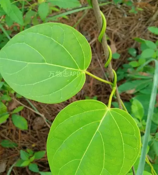 粗壮大藤本。茎具皮孔。枝条具小瘤状突起。叶对生;叶柄长2.5-6cm;叶片宽卵形或近圆形,长8-15cm,宽5-12cm,先端急尖或短渐尖,基部截形或浅心形,几无毛。伞形状聚伞花序腋生;倒垂;花萼裂片5,外面被柔毛,内面有腺体多个;花冠黄绿色,夜吐清香,裂片5裂,宽卵形;副花冠裂片着生于雄蕊背面,肉质膨胀;花粉块每室1个,直立;子房具疏柔毛,花柱短,柱头先端具圆锥状突起。蓇葖果披针状圆柱形,长达12cm,直径约3cm,外果皮被白粉,具皱纹棱条。种子宽卵形,扁平,有薄边,长达1.2cm,宽约6mm,先端具白色绢质种毛,长达4.5cm。花期4-9月,果期7-12月。