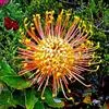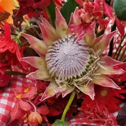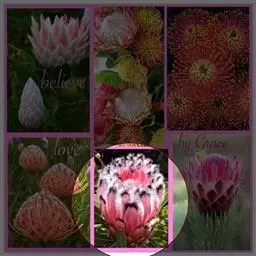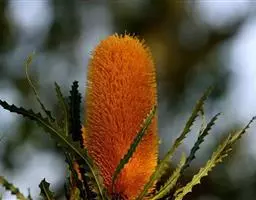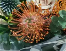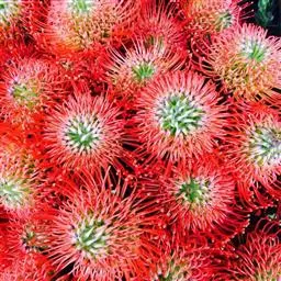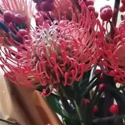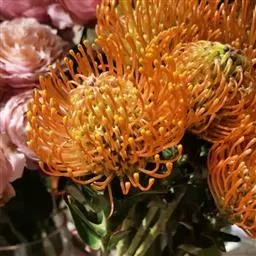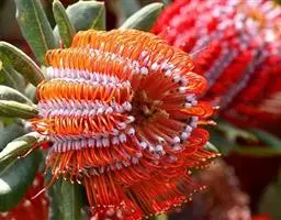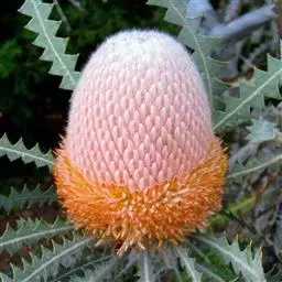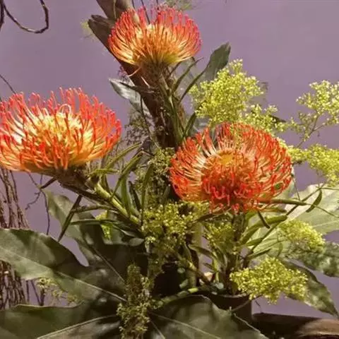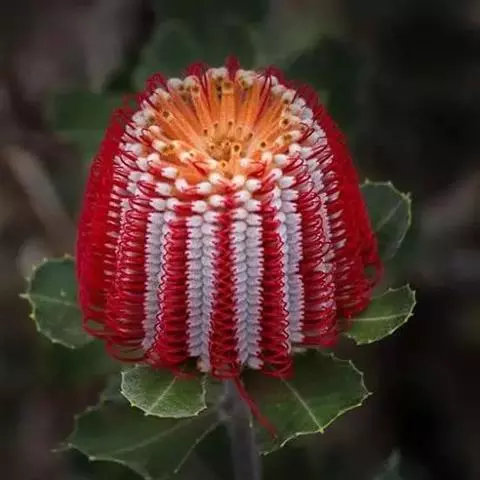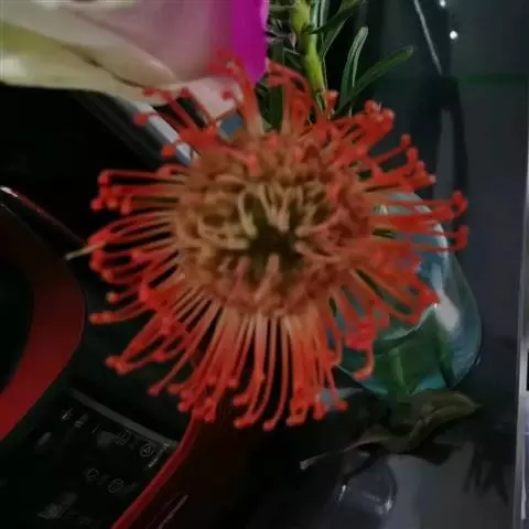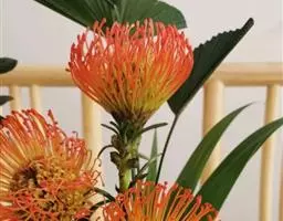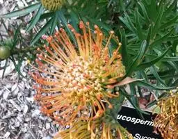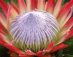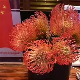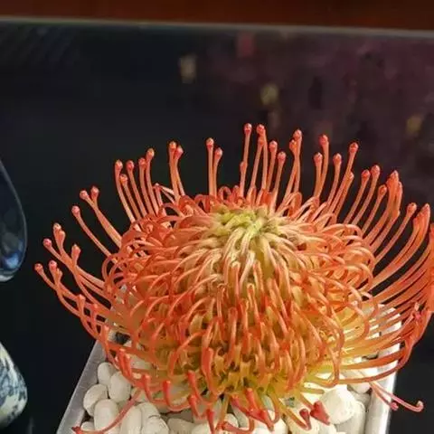 帝王花,山龙眼科帝王花属多年生常绿灌木植;茎干粗壮,叶色翠绿光亮;花朵呈圆球状;其苞片有的完全打开,…