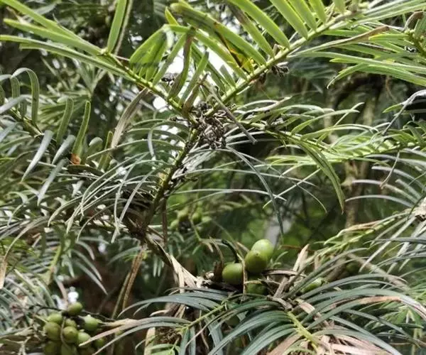 4.病虫防治:三尖杉抗虫性强,病虫害少,偶有蜘蛛或蚜虫发生,可用敌敌畏、乐果一类农药喷杀防治。