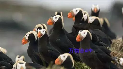 角嘴海雀,是海雀科、角嘴海雀属的中型海鸟,体长32-41厘米,嘴短而粗呈圆锥状、橙色。夏羽上嘴基部…