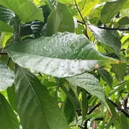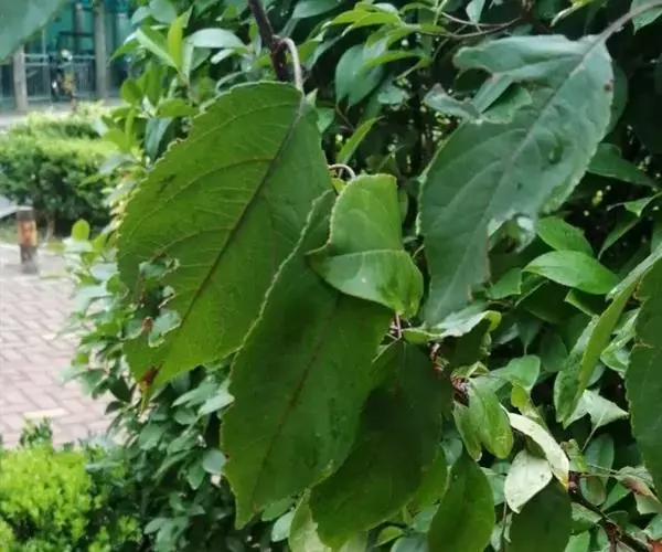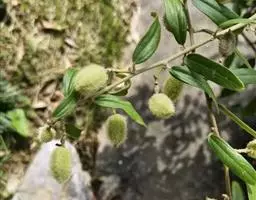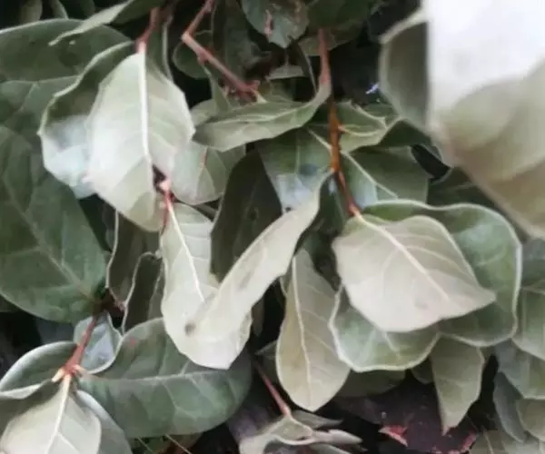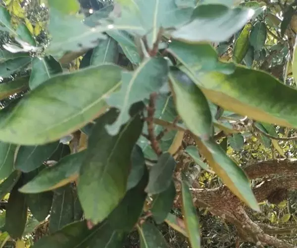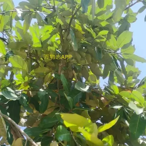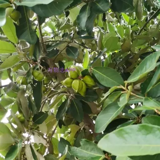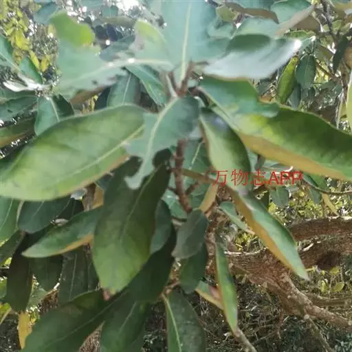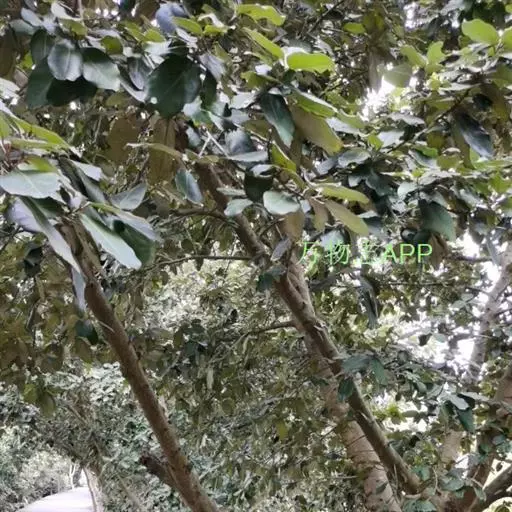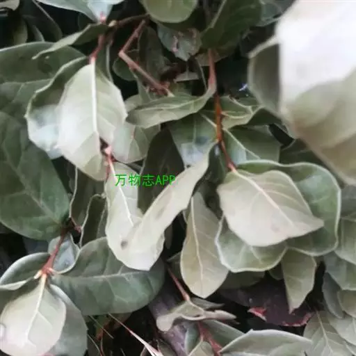常绿乔木,高约10米;树皮灰黑色,小枝幼时被白色鳞秕。叶革质,矩圆状披针形、椭圆形或卵形,长10-20厘米,宽5-10厘米,顶端锐尖或钝,基部钝,上面无毛或几无毛,下面密被银白色鳞秕;叶柄长1-2厘米;托叶披针形,早落。