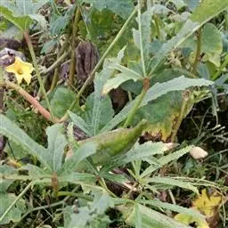 咖啡黄葵 Moench)亦称黄秋葵,是锦葵科一年生草本植物。茎圆柱形,疏生散刺。叶掌状,裂片阔至狭,…