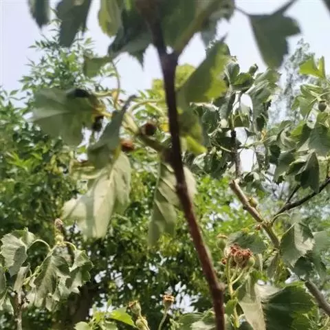 大苗移植:选择Ⅰ、Ⅱ级容器小苗,初植株行距一般为0.8米×0.8米,即15000株/公顷,植穴规格以30厘米×30厘米×25厘米为宜。移植时小心撕开营养袋,保持其根系完整,移栽时扶直苗木茎干,栽植深度以容器土面略低于大田土面为宜,覆土后踏实植苗周围的土,再用水或泥浆灌实。移植后淋透水,随时检查成活情况,及时补苗。3-4年后待树苗胸径长至3-4厘米时,可在早春(2-3月)树苗萌动前间苗,间苗50%,保留7500株/公顷。6-7年后再间苗50%,保留3750株/公顷,以培育胸径8厘米以上绿化大苗。