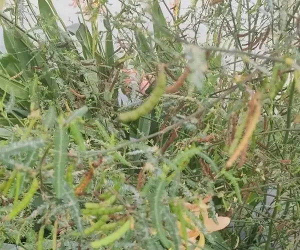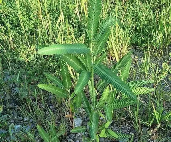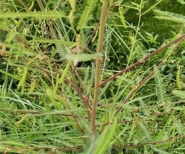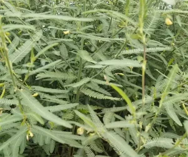 合萌 一年生草本或亚灌木状,茎直立,高0.3~1米。多分枝,圆柱形,无毛,具小凸点而稍粗糙,小枝绿色。