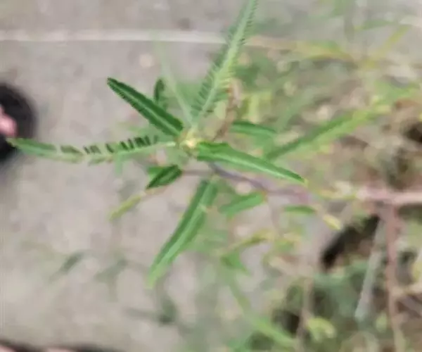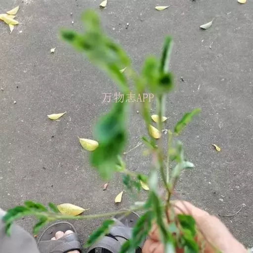 叶具20~30对小叶或更多;托叶膜质,卵形至披针形,长约1厘米,基部下延成耳状,通常有缺刻或啮蚀状;叶柄长约3毫米;小叶近无柄,薄纸质,线状长圆形,长5~10(-15)毫米,宽2~2.5(-3.5)毫米,上面密布腺点,下面稍带白粉,先端钝圆或微凹,具细刺尖头,基部歪斜,全缘;小托叶极小。