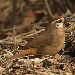 棕噪鹛中型鸟类,体长25~28厘米。上体赭褐色,头顶具黑色羽缘,尾上覆羽灰白色,尾羽棕栗色,…