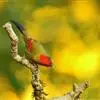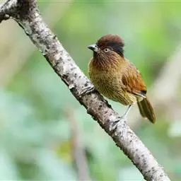 喜作喧闹的舞蹈炫耀表演,尾抽动并扑打绯红色的两翼。结群栖于常绿林的稠密林下植被及竹丛中。叫声响亮刺耳,群鸟发出叽喳声。
