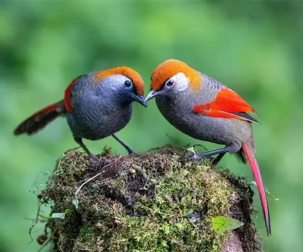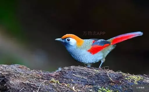 赤尾噪鹛中型鸟类,体长24~28厘米。头顶至后颈红棕色,两翅和尾鲜红色,眼先、眉纹、颊、颏和喉黑色,…