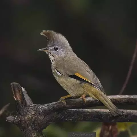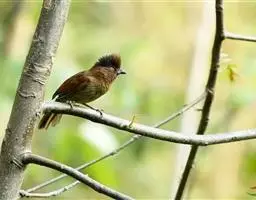 褐头凤鹛小型鸟类,体长12~13厘米。头顶有可竖立的红褐色羽冠,头侧、枕、颊、喉和下体白色,…