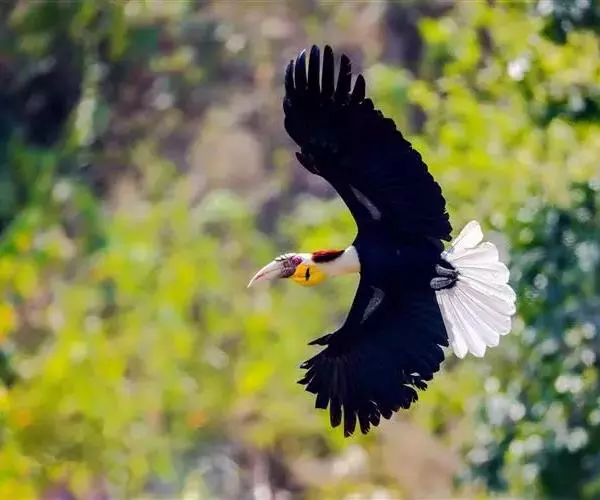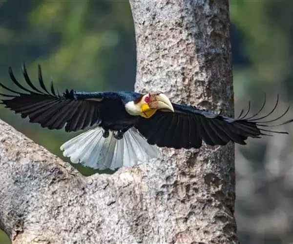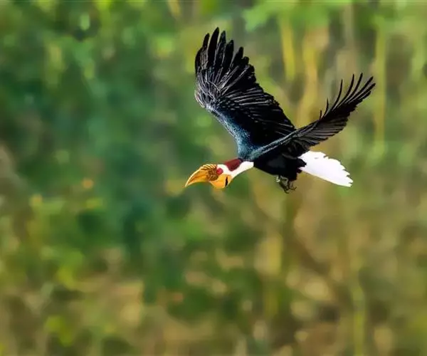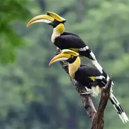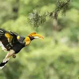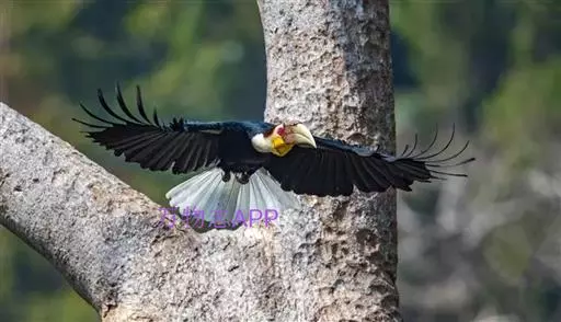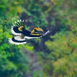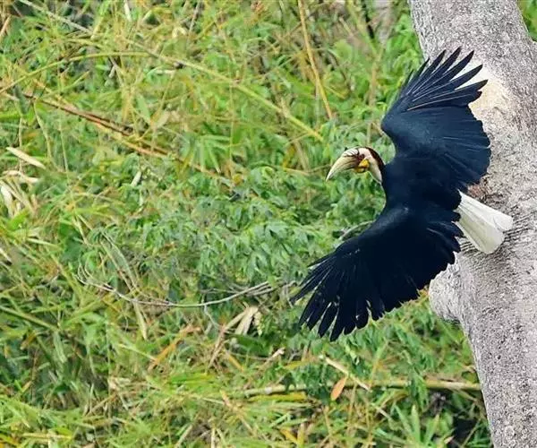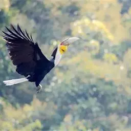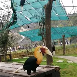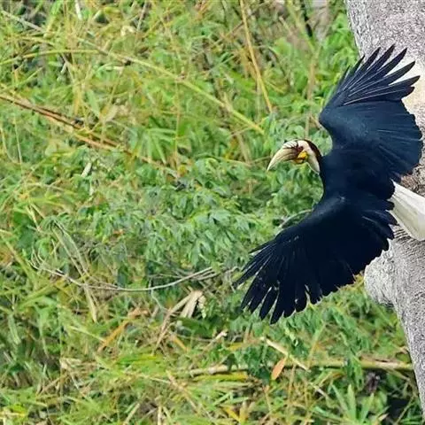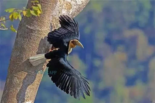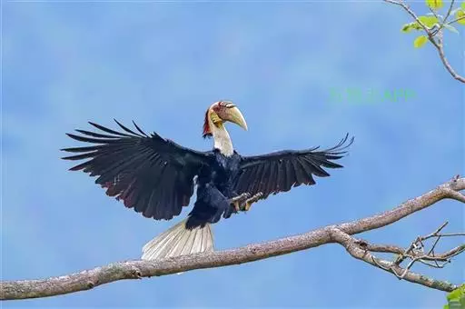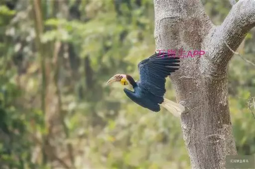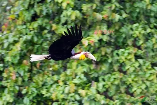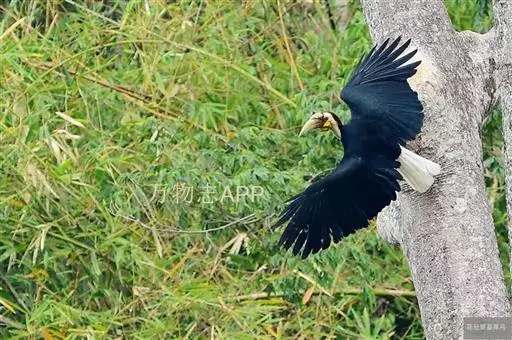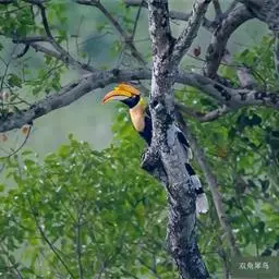 花冠皱盔犀鸟 主要栖息于海拔400~1500m的亚热带常绿阔叶林中,尤其在河流沿岸湿性常绿阔叶林中较易见。