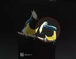 雌鸟尾白色,其余体羽黑色,亦具和雄鸟一样的金属绿色或紫蓝色光泽。喉囊皮肤亮深蓝色,其上亦具一道黑色横带。