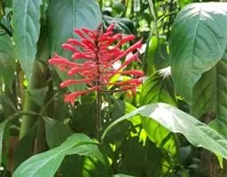 虾蟆花是爵床科老鼠簕属植物;叶对生,羽状分裂或浅裂;花序穗状,顶生,苞片大,小花多数,白至褐红色,…