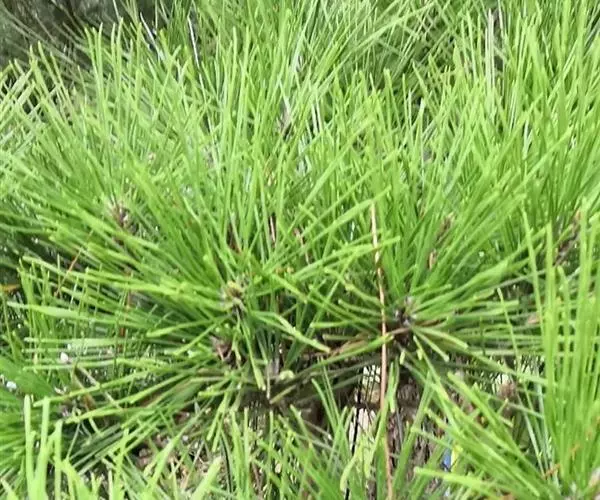 乔 黑松 木,高达30米,胸径可达2米;幼树树皮暗灰色,老则灰黑色,粗厚,裂成块片脱落;枝条开展,树冠宽圆锥状或伞形;一年生枝淡褐黄色,无毛;冬芽银白色,圆柱状椭圆形或圆柱形,顶端尖,芽鳞披针形或条状披针形,边缘白色丝状。针叶2针一束,深绿色,有光泽,粗硬,长6-12厘米,径1.5-2毫米,边缘有细锯齿,背腹面均有气孔线;横切面皮下层细胞一或二层、连续排列,两角上二至四层,树脂道6-11个,中生。