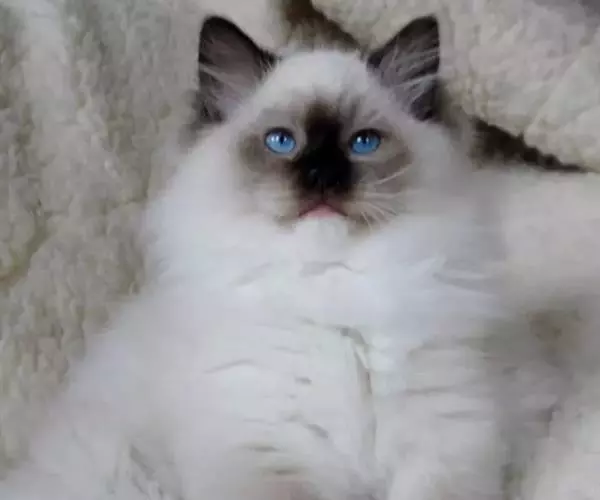 布偶猫是一个晚熟的品种,它们的毛色至少要到2岁才会足够丰满,而体格和体重则要至少4岁才能发育完。刚出生的幼猫全身是白色的,一周后幼猫的脸部,耳朵,尾巴开始有颜色变化,直到2岁时被毛才稳定下来,直到3-4岁才完全长成。