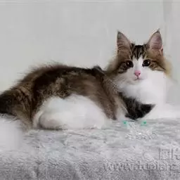 被毛:外层粗毛丰富,自然并且不黯哑,适中的长度;尽量少的内层绒毛。毛随身体线条生长,最好有大围脖。脸上的毛短,围脖的毛长。肩胛骨上的毛短,一直到尾巴逐渐变长。允许因成年猫未绝育和季节性变化引起的短被毛现象。