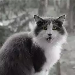 山猫 顾名思义,具有山猫样的条状虎斑,优雅美丽,出现于面部。属于斑纹型附带图案。