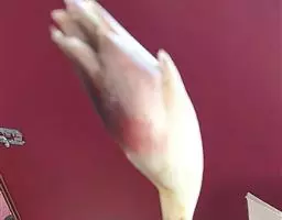 足部:匀称的大而圆,并且有丛毛。