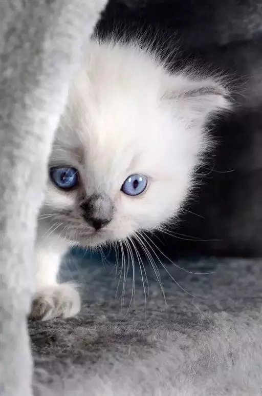 *不合格特征:重点色中带白色斑纹;手套型猫没有白色下巴或白色过高;双色猫的白色面具中有深色斑纹或腿部色块;梵色大面积重点着色;胸部及腹部非白色;眼睛颜色不是蓝色等。