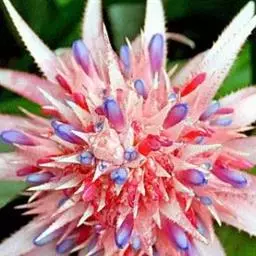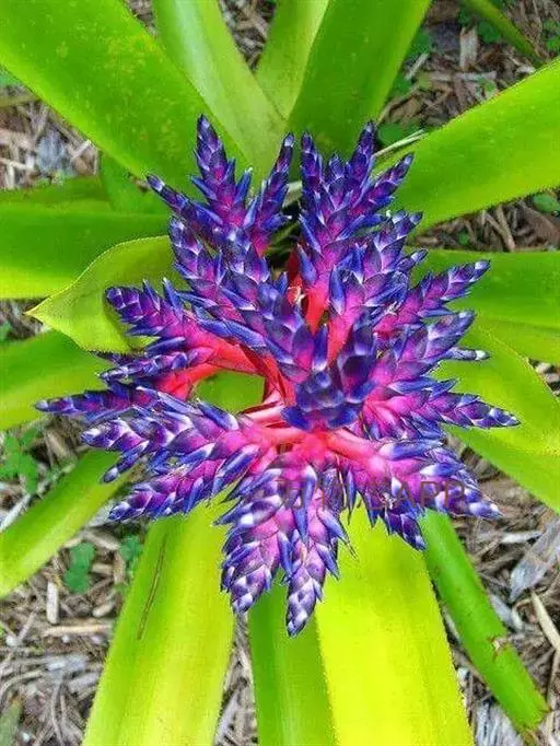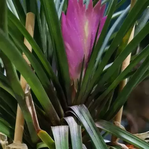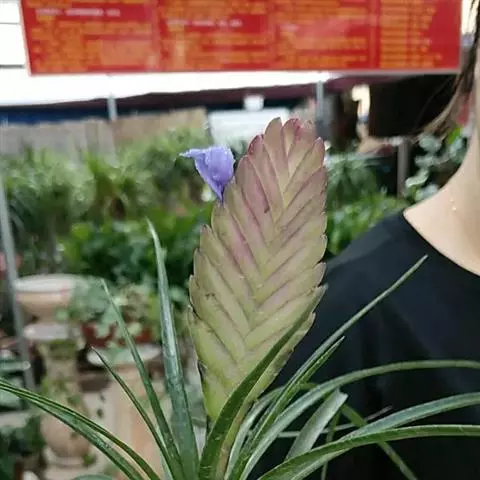 紫花凤梨,是凤梨科铁兰属的多年生草本植物。株高不及30厘米;叶片拱状线形,叶丛族生于短缩茎上,…