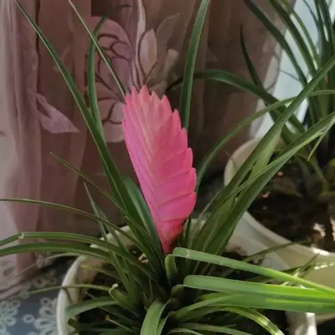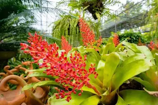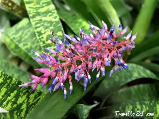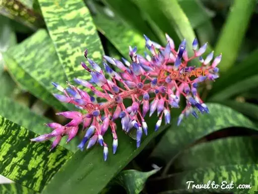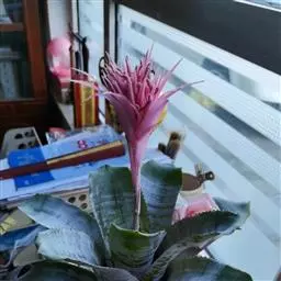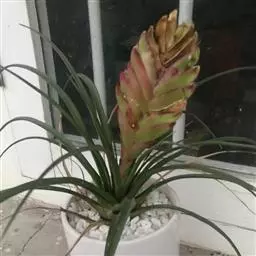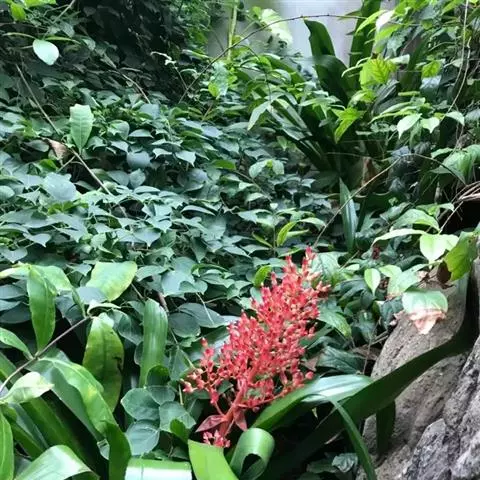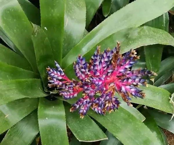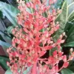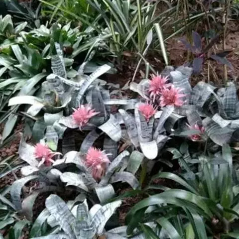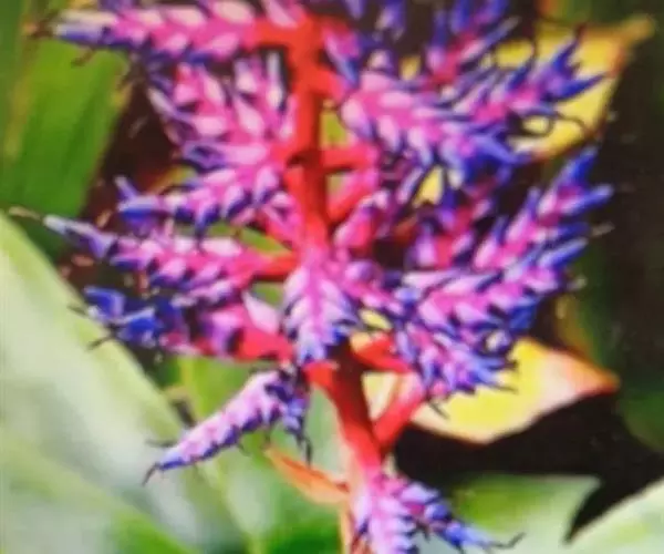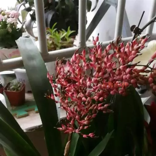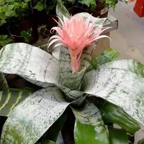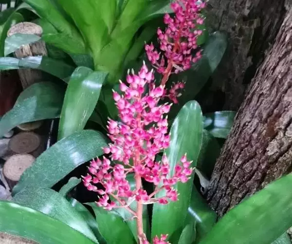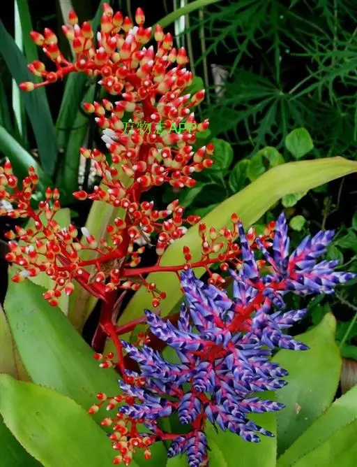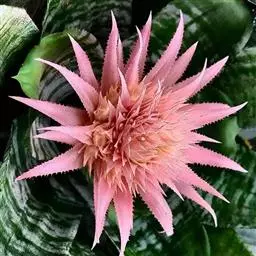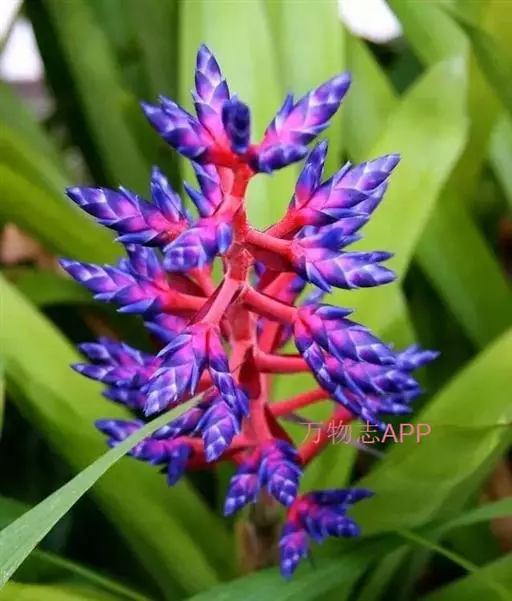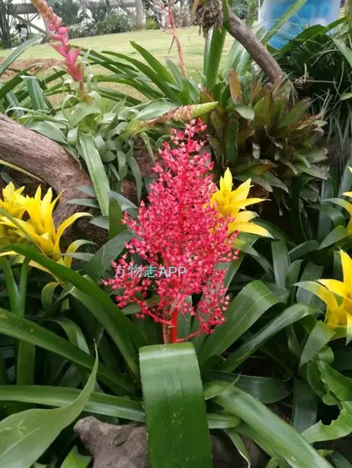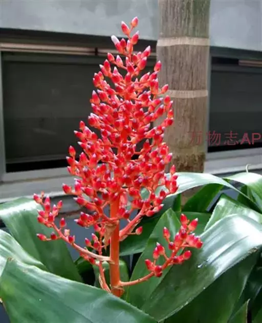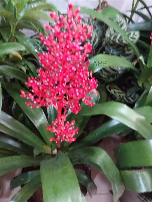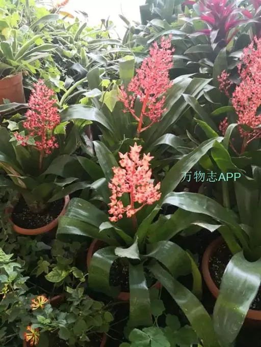 珊瑚凤梨(Aechmea fulgens Brongn.)凤梨科多年生附生草本,也可陆生。叶狭长,叶缘光滑或带刺,叶片莲座状丛生。叶面常有诱人的斑点或条纹。花序自叶丛中抽出。