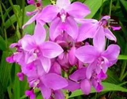 紫花苞舌兰:植株高达1米。假鳞茎卵状圆锥形,具3-5枚叶。叶质地薄,淡绿色,狭长,具折扇状的脉。…