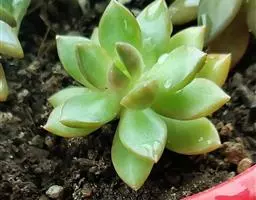 小红衣是景天科、拟石莲花属的一种多肉植物。叶片匙形,扁平细长,叶表具白粉,有明显的半透明边缘,…